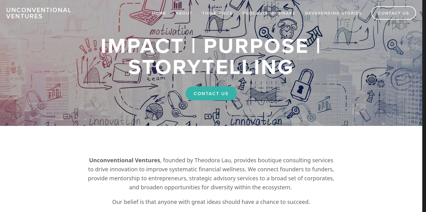 Unconventional Ventures provides boutique consulting services to drive innovation to improve systematic financial wellness. We connect founders to funders, provide mentorship to entrepreneurs, strategic advisory services to a broad set of corporates, and broaden opportunities for diversity within the ecosystem. Our belief is that anyone with great ideas should have a chance to succeed.