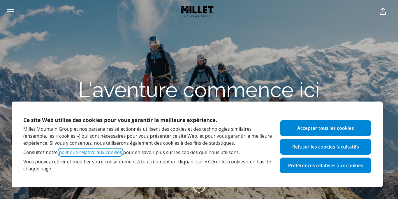 [Automatic translation follows] Our Millet brand and our teams are committed and innovate for outdoor sports enthusiasts.