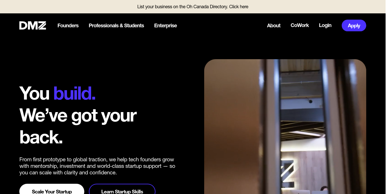 DMZ is a global startup ecosystem that features a world-leading incubator, talent academy, partner network and strategic investment fund. Through its award-winning programming, DMZ equips tech founders with the tools needed to build, launch and scale high-impact startups.