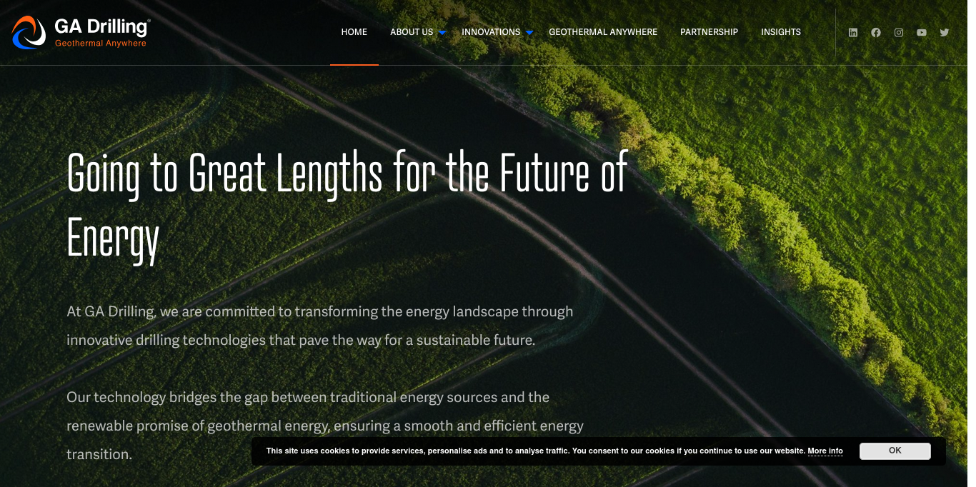 Geothermal energy, Climate change, Clean energy, Investment, Energy transition, GA Drilling, Hard rock drilling, Drilling, Deep geothermal, Renewables, Data centers, Baseload , Decarbonization, Heating, Energy security, Energy independence, Geothermal project, Geothermal well construction, Drilling innovation, and Sustainability