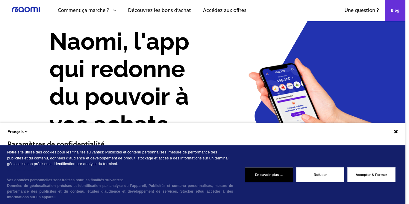 Naomi is a loyalty and customer knowledge solution based on open banking. We are committed to the purchasing power of users of our 100% mobile application by automatically rewarding their spending in a galaxy of partner brands. Thanks to the wealth of banking data, we offer brands a unique SaaS solution for market knowledge and personalized customer activations.
