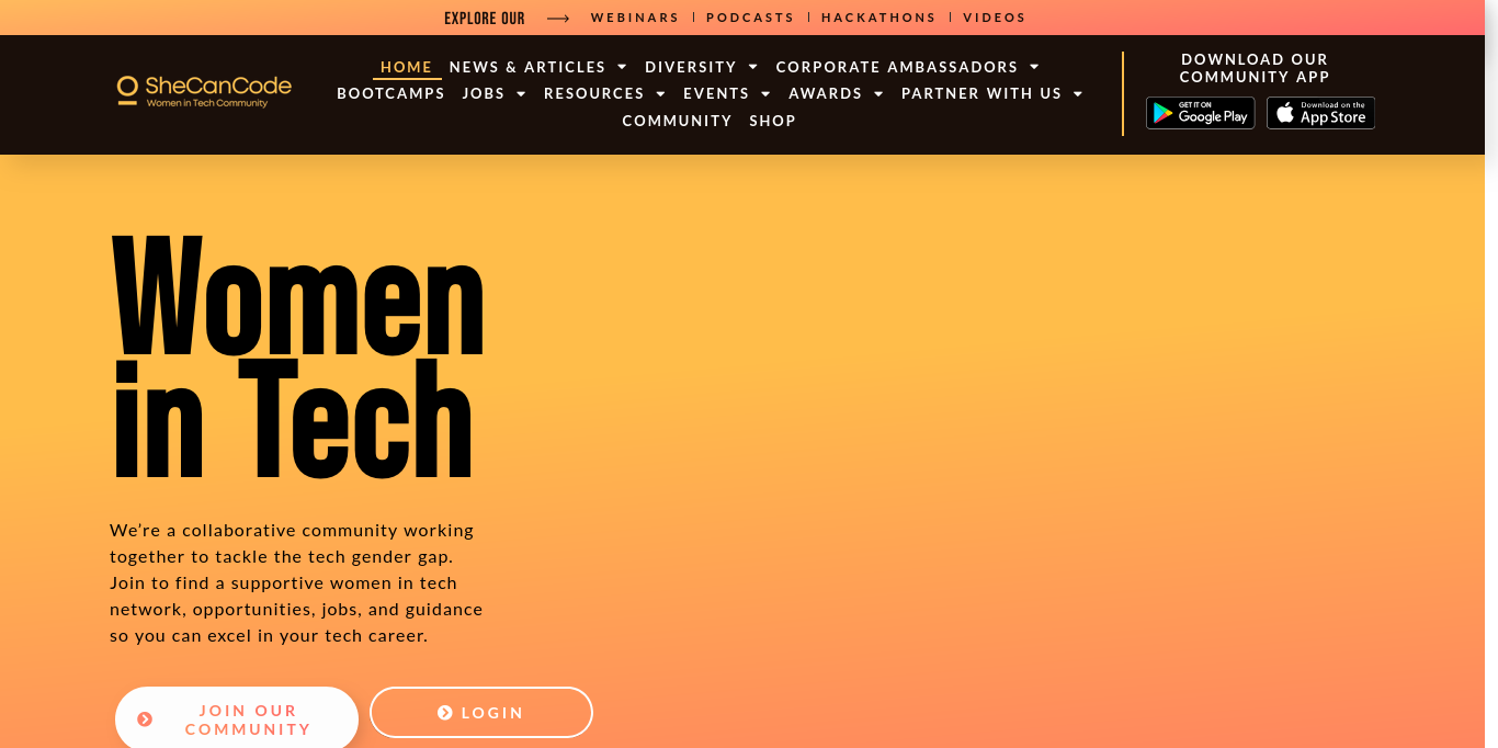Join SheCanCode, a community of women in tech, and discover female empowerment through mentorship, job opportunities, and expert guidance.