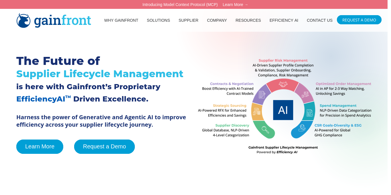 Gainfront AI/ML Powered Procurement Solution brings to the marketplace an AI/ML powered procurement tool to gain full visibility on all spend types for procurement leaders. It integrates a robust diversity spend solution with supplier sustainability, performance management and contracts management.