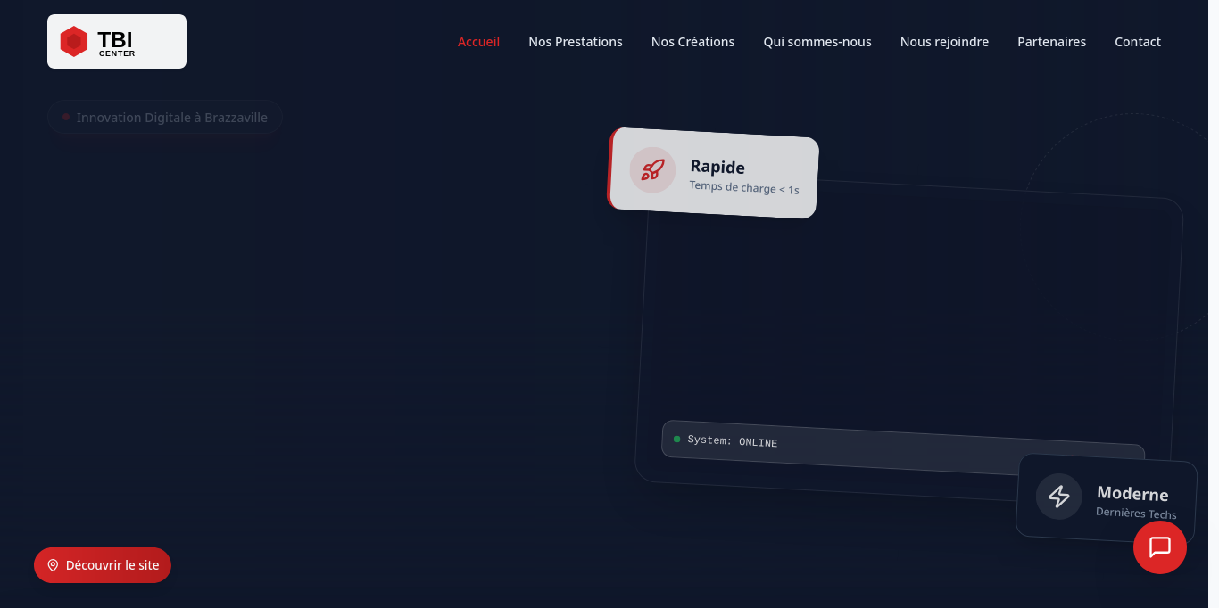 TBI Center, votre partenaire digital en République du Congo. Création sites web, applications mobiles, logiciels sur mesure, marketing digital et cybersécurité à Brazzaville.